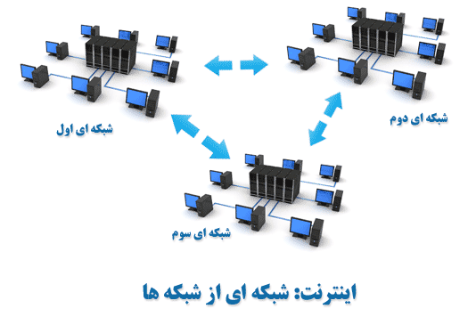 اینترنت را می توان به این صورت توصیف کرد: یک شبکه جهانی از شبکههای رایانهای که در ابتدا توسط به هم پیوستن شبکههای نظامی و دانشگاهی ایجاد شدند، اما سپس کاربردهای تجاری و ارتباطی مختلفی نیز برای آن پدید آمد. به این ترتیب اینترنت شبکهای از شبکههای رایانهای است که در این شبکه عظیم، رایانهها میتوانند اطلاعات خود را با هم مبادله کنند. برای مبادله این اطلاعات از روشی بنام TCP/IP استفاده میشود. در شکل زیر این مفهوم ترسیم شده است.