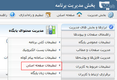 تنظیم مطالب، صفحات و دیگر چیزهایی که باید در صفحهی اصلی نمایش داده شود |