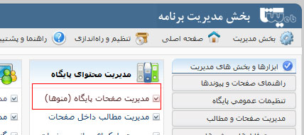 در بسیاری از بخش های برنامه مثل مدیریت صفحات یا مدیریت مطالب لینک مشاهده