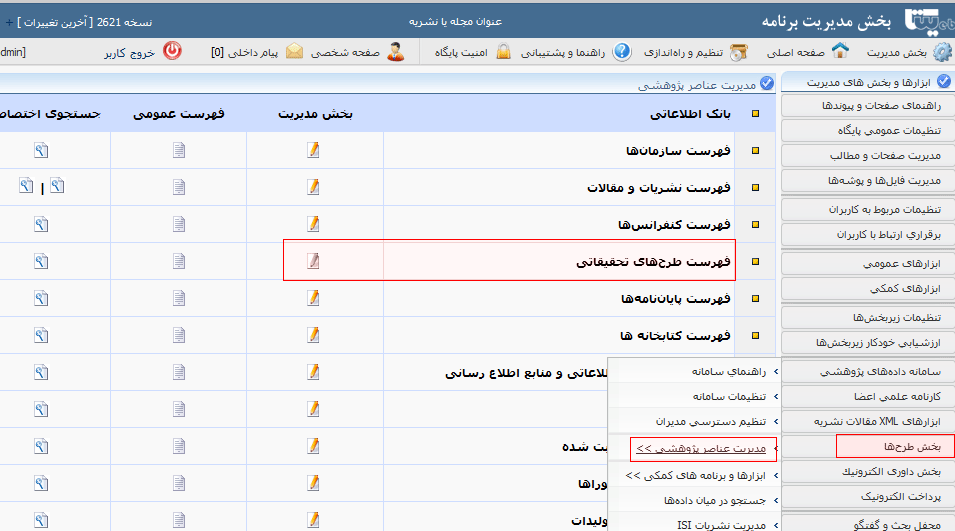 تنظیم و راه اندازی سامانه مدیریت طرح ها مشابه سامانه مدیریت نشریه است. برای استفاده از این سامانه لطفا ابتدا راهنمای بخش نشریات را بررسی کنید. برای یادگیری در نظر داشته باشید که واژه ی مقاله را طرح پژوهشی در نظر بگیرید. سپس مطالب تکمیلی را از بخش زیر مطالعه کنید.